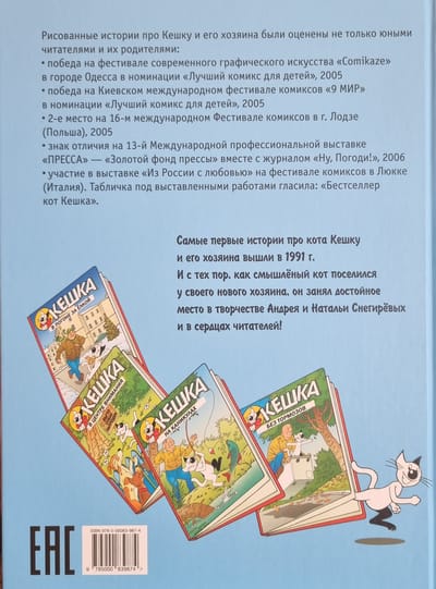 The most popular cat in the history of Russian comics has won the hearts of readers of several generations and is a contender for the longevity record: he recently celebrated his quarter-century anniversary. Cheerful, energetic, cunning, a little narcissistic - Keshka has not changed at all during this time and certainly has not aged. He has only learned to speak other languages: for example, in 2018, stories about him are published in Switzerland. For the first time, all the adventures of the extraordinary cat are collected under one cover. Both those who have long ago carefully cut out pictures from the newspaper "Family" and those who have only recently learned to read will appreciate this collector's edition. More than 90 episodes, short and long, come together to form a single, but such a detailed story about the cat-explorer: Keshka had to catch mice in the house, go to the North, try out a time machine, and also visit, no more and no less, the Moon.