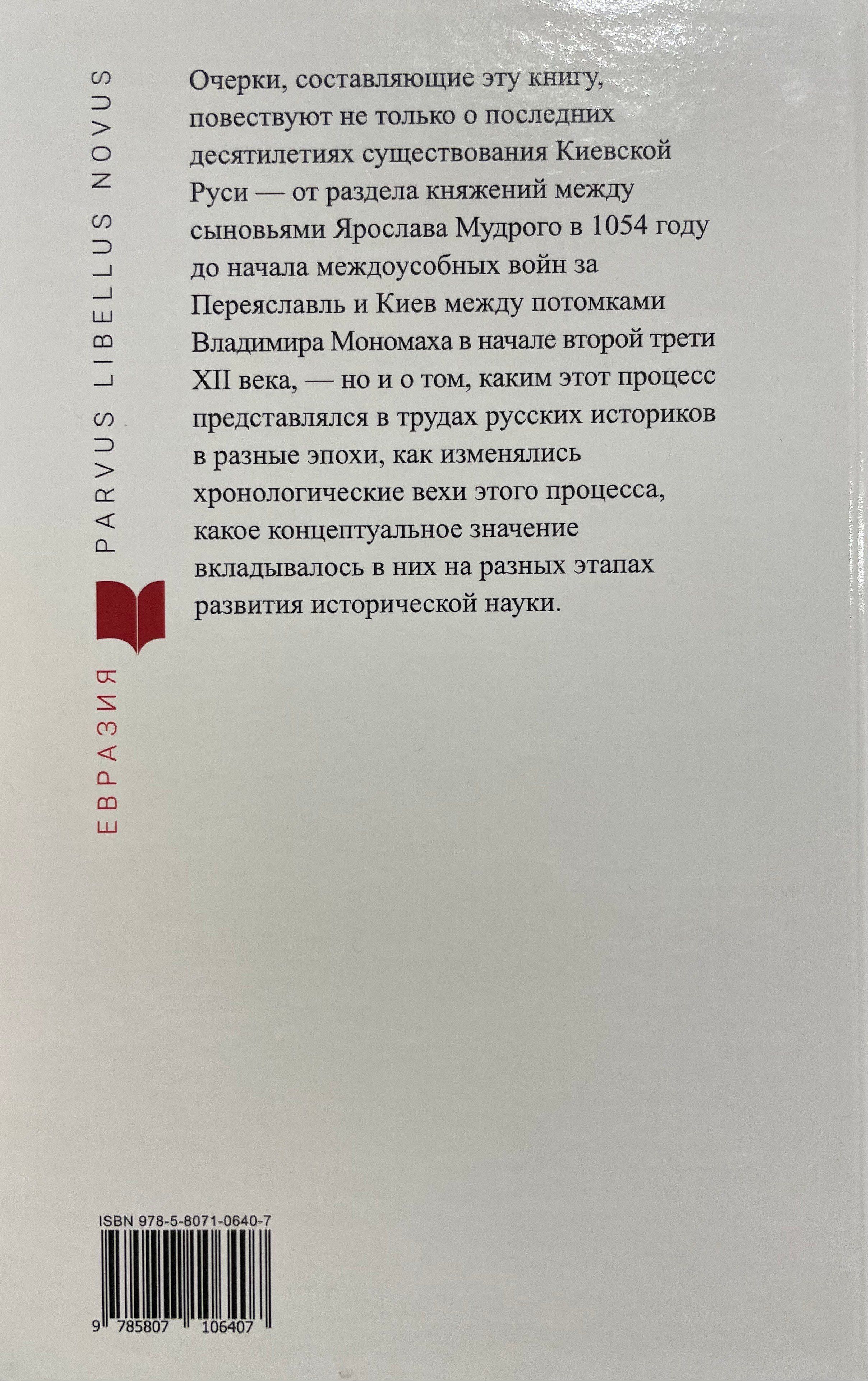 The essays that comprise this book tell not only about the final decades of the existence of Kievan Rus'—from the division of principalities between the sons of Yaroslav the Wise in 1054 to the outbreak of internecine wars for Pereyaslavl and Kyiv between the descendants of Vladimir Monomakh at the beginning of the second third of the 12th century—but also about how this process was presented in the works of Russian historians in different eras, how the chronological milestones of this process changed, and what conceptual significance was invested in them at different stages of the development of historical science.