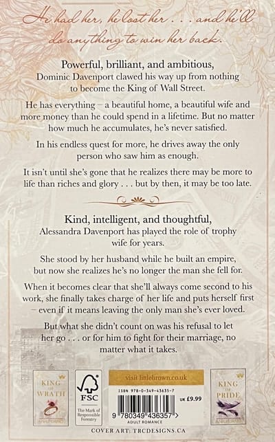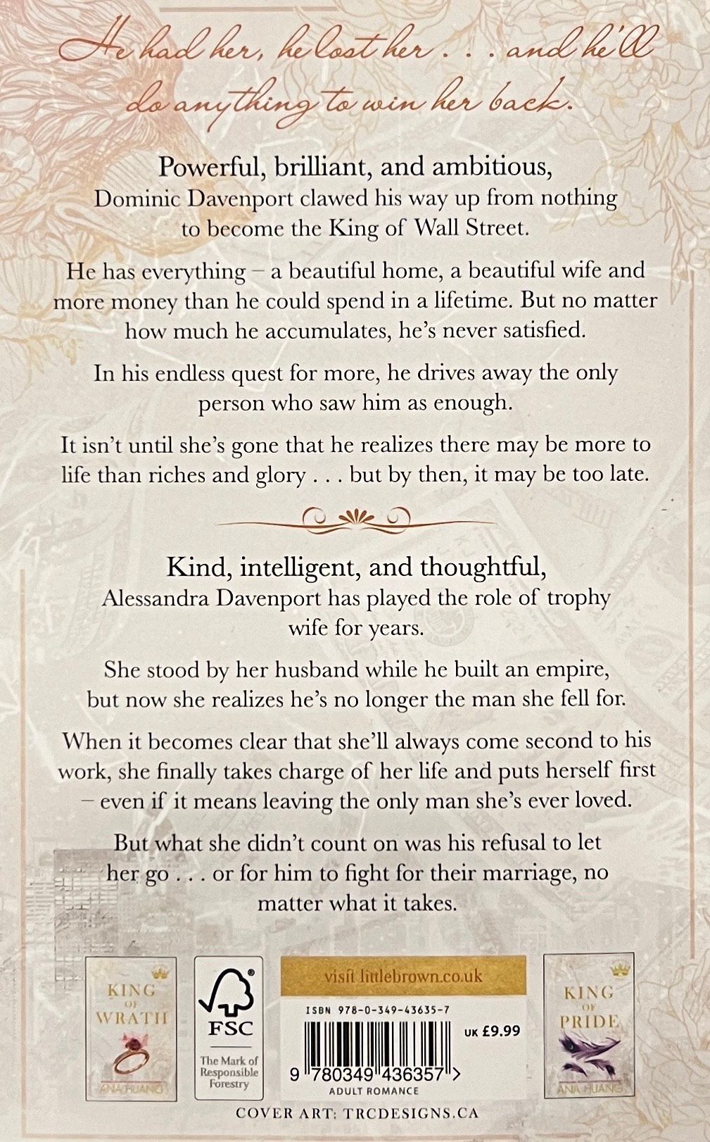 Powerful, brilliant, and ambitious, Dominic Davenport clawed his way up from nothing to become the King of Wall Street. He has everything - a beautiful home, a beautiful wife, and more money than he could spend in a lifetime. But no matter how much he accumulates, he’s never satisfied. In his endless quest for more, he drives away the only person who saw him as enough. It isn’t until she’s gone that he realizes there may be more to life than riches and glory... but by then, it may be too late. *** Kind, intelligent, and thoughtful, Alessandra Davenport has played the role of trophy wife for years. She stood by her husband while he built an empire, but now that they’ve reached the top, she realizes he’s no longer the man she fell for. When it becomes clear that she’ll always come second to his work, she finally takes charge of her life and puts herself first - even if it means leaving the only man she’s ever loved. But what she didn’t count on was his refusal to let her go... or for him to fight for their marriage, no matter what it takes. King of Greed is a steamy marriage in trouble/second chance romance. It's book three in the Kings of Sin series but can be read as a standalone.