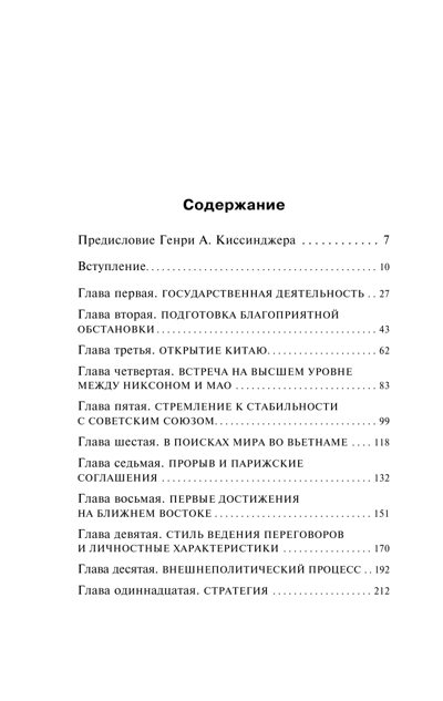 This book is a long interview with Henry Kissinger, in which he talks about his activities as US President Richard Nixon's National Security Advisor, the breakthrough in relations with China, a new page in relations with the Soviet Union and the difficult negotiations to end the Vietnam War.