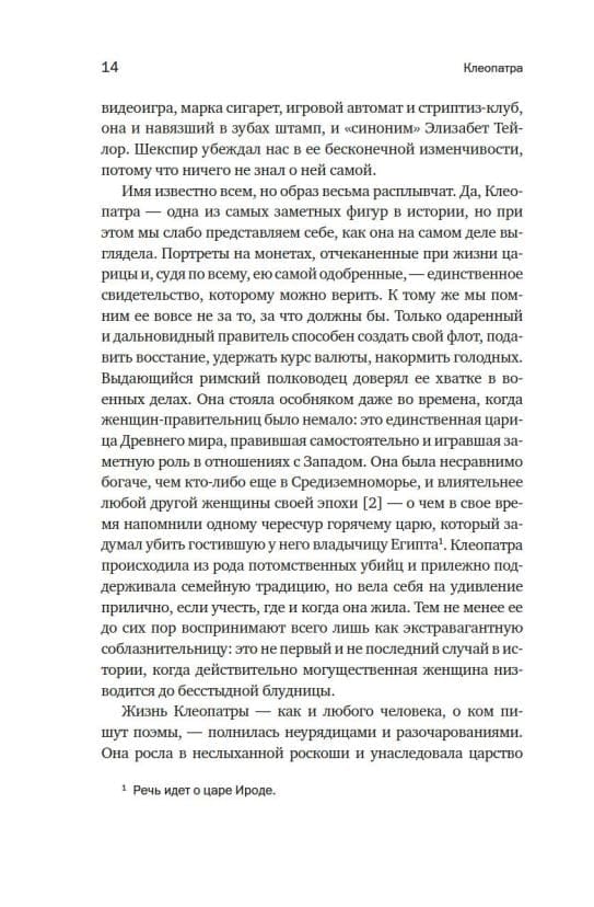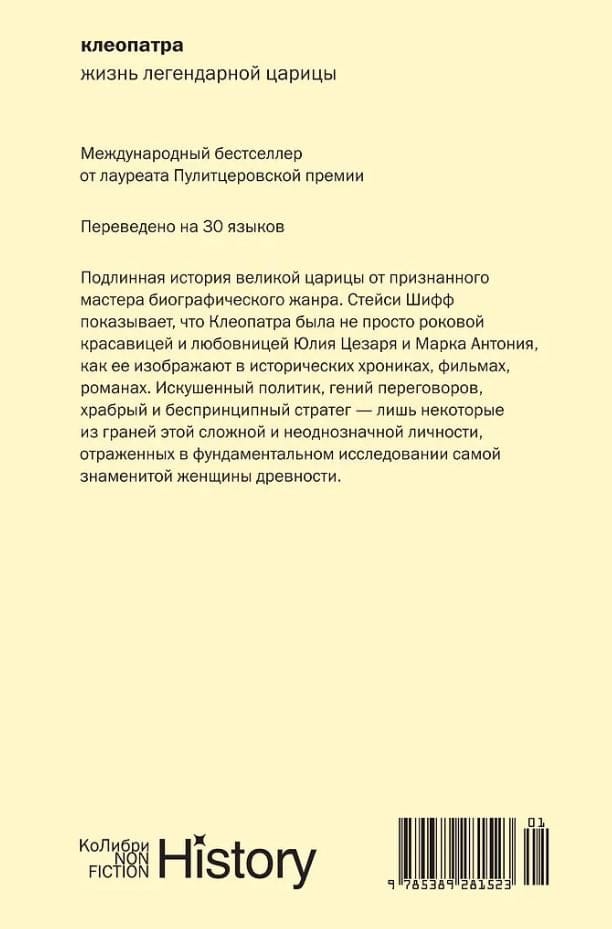 The last ruler of Egypt, the famous Queen Cleopatra is rightfully considered one of the most striking and controversial women in world history. Her image was recreated by William Shakespeare and Bernard Shaw, Michelangelo Buonarroti and Giovanni Battista Tiepolo, and many of our contemporaries judge the appearance and character of the queen by her cinematic "double" - the brilliant Elizabeth Taylor. However, much information about the life of the queen has been lost or mythologized, and her personality has been lost in romanticized images. In her large-scale study, translated into 30 languages, Pulitzer Prize winner and master of the biographical genre Stacy Schiff has done a virtuoso job with a huge array of classical sources to reveal to the world the true Cleopatra: a strong ruler, an astute strategist and a skillful negotiator.