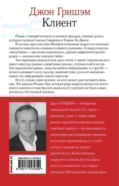 The novel that became the basis for the cult movie starring Susan Sarandon and Tommy Lee Jones. In the forest thickets near Memphis, an ordinary teenager unwittingly witnessed the suicide of a solid man. And before his death, the suicide - as it later turned out, the lawyer of a mafia group - entrusted him with a dangerous secret. So the boy found himself between two fires - on the one hand he is pressured by over zealous "defenders of the law", ready to go to any violation of the rules, just to get the information, and on the other hand - he is being hunted by a killer, hired by those for whom it is vital to hide this information forever. And there is only one person the boy can count on. This is a lawyer Reggie Love, who for the sake of protecting the interests of his young client is ready to challenge the entire judicial system and even risk his own life ...
