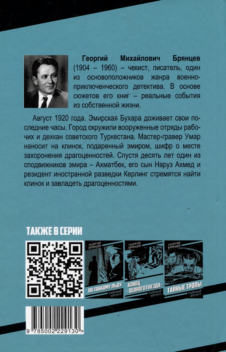 Georgy Mikhailovich Bryantsev (1904 - 1960) - a security officer, intelligence officer, saboteur, honorary employee of the state security and a talented writer who devoted his entire life to the state security agencies. The plots of his books are based on real events from his own life.