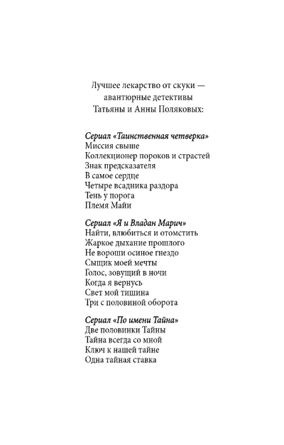 Little Tatyana was raised by her father as if he were training her to be a super-agent, but one day her father disappeared, and the girl ended up in an orphanage. As an adult, Tanya joined the police. She's a physical training instructor, but she's always ready to help her colleagues with investigations, even if it's simply a case of a student's missing laptop. However, over time, Tatyana begins to suspect that the laptop's disappearance triggered a series of murders that are happening one after another around the student. She needs to find it urgently to stop the crimes.
