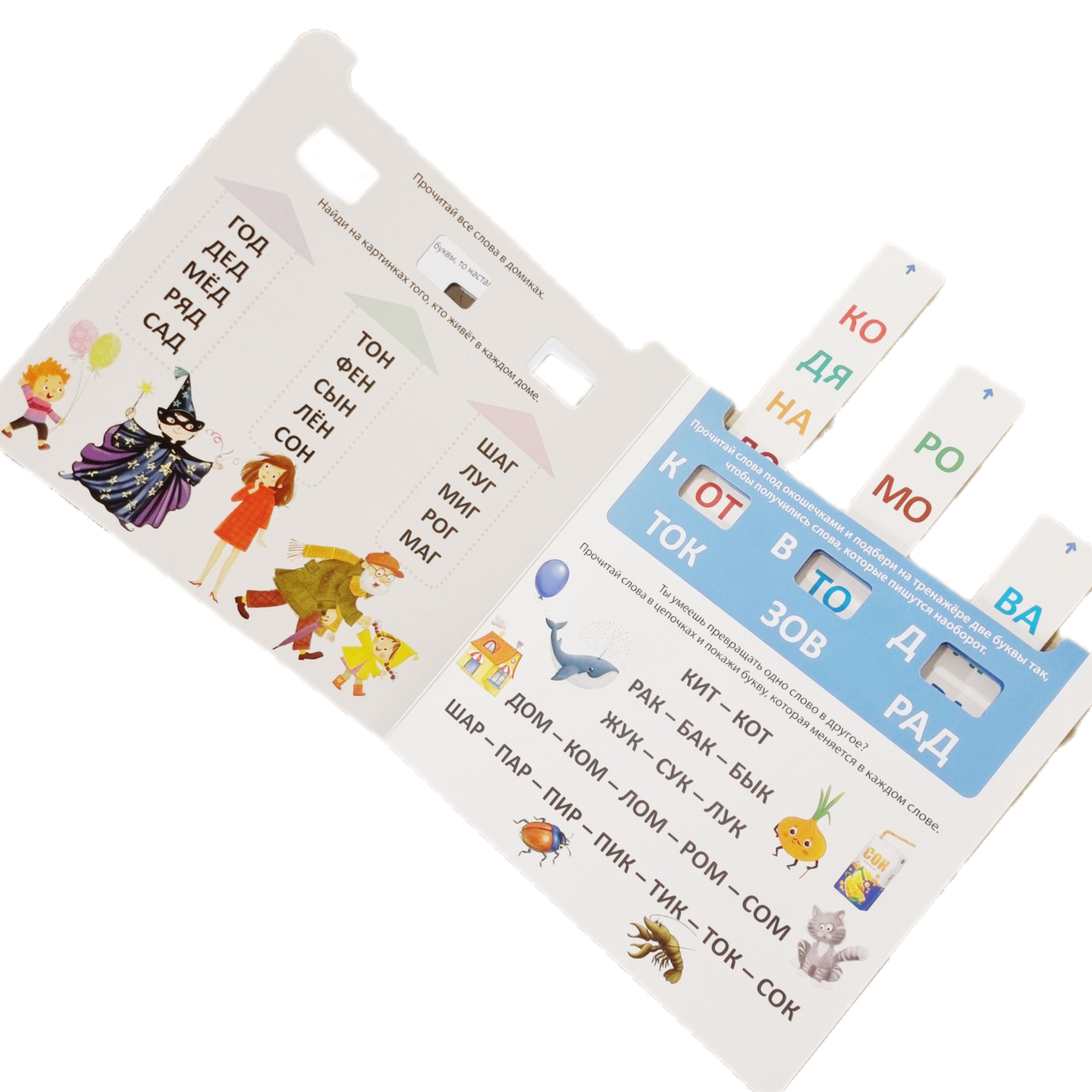 On each page there are colorful pictures and interesting tasks: match the syllable to the letter, read and find, make words from syllables, read backwards, etc.
