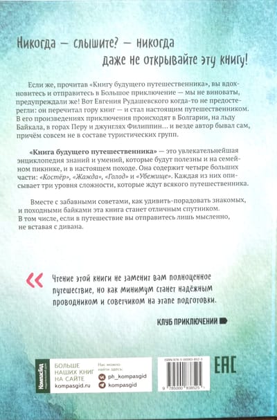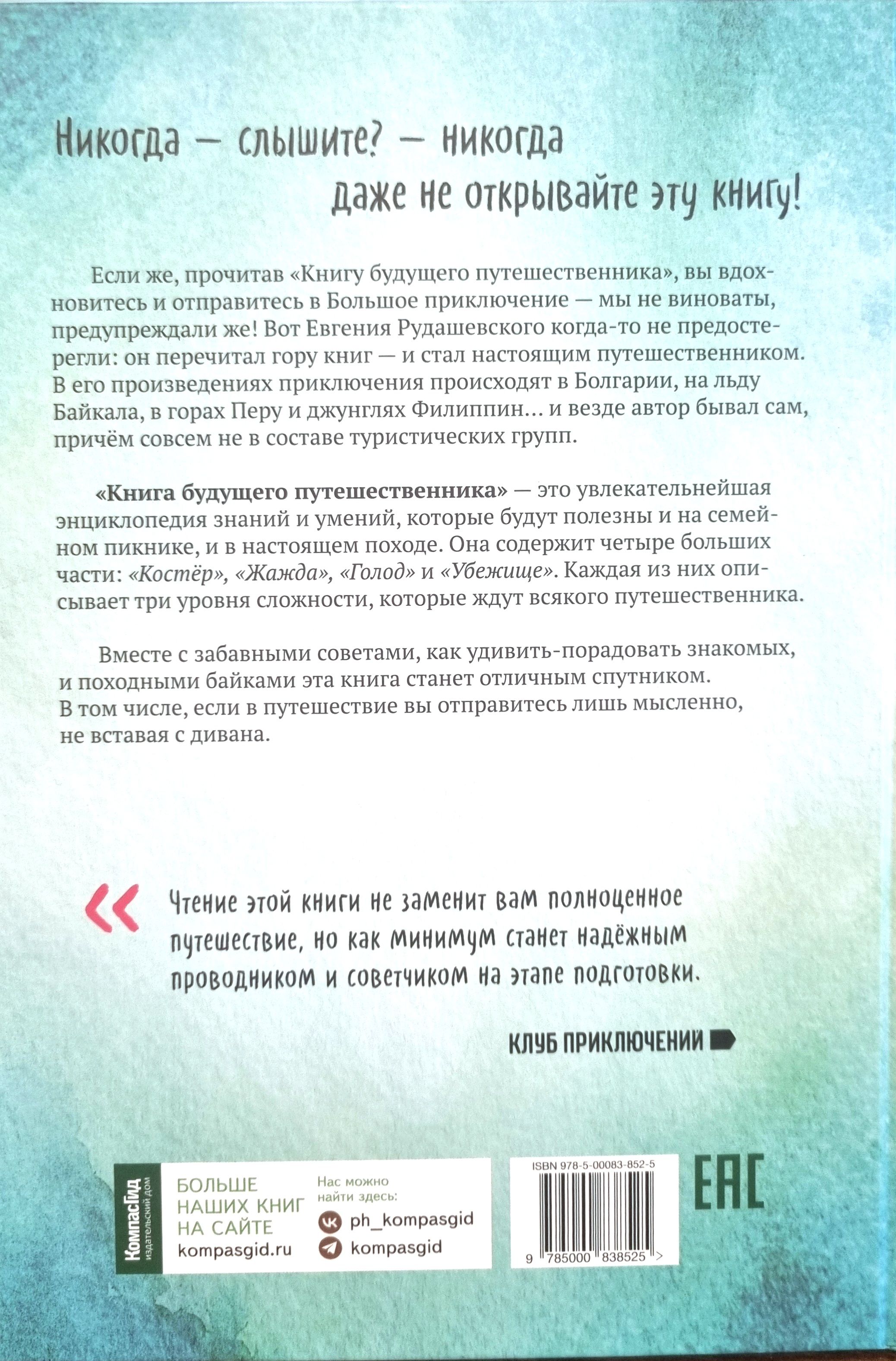 Never — do you hear? — never even open this book! And if, after reading “The Book of the Future Traveler,” you get inspired and set off on a Big Adventure — it’s not our fault, we warned you! Evgeny Rudashevsky was once not warned: he reread a mountain of books — and became a real traveler. And also a writer: in his works, adventures take place in Bulgaria, on the ice of Lake Baikal, in the mountains of Peru and the jungles of the Philippines ... and the author has been everywhere himself, and not at all as part of a tourist group.