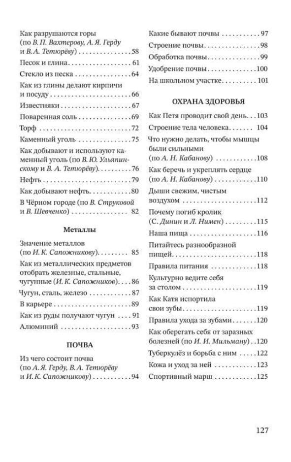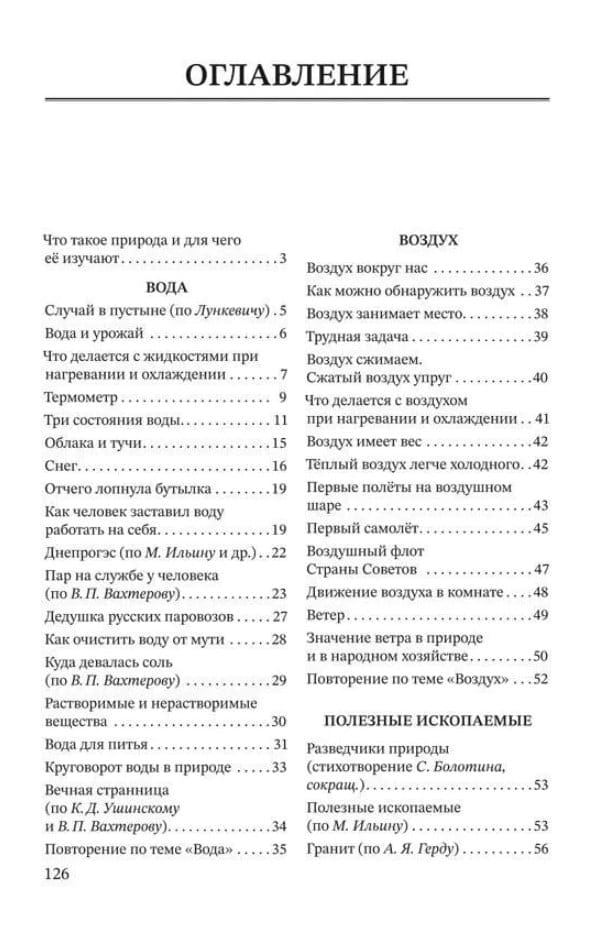 This fourth-grade science reading book will answer these and many other questions. Students will expand on their basic knowledge of the natural world they learned in elementary school. The publication contains five extensive sections: "Water," "Air," "Soil," "Minerals," and "Health." The informative articles, written in accessible and easy-to-understand language, are accompanied by illustrations, diagrams, and tables. Simple experiments and tests, which can be conducted at home, will help students better understand and reinforce the theoretical material. The book places special emphasis on health and personal hygiene. Schoolchildren will learn about the importance of exercise and dental care, the benefits of a varied diet, and proper table manners. This book will be useful for both parents who provide extracurricular activities for their children and teachers who strive to make school lessons engaging.