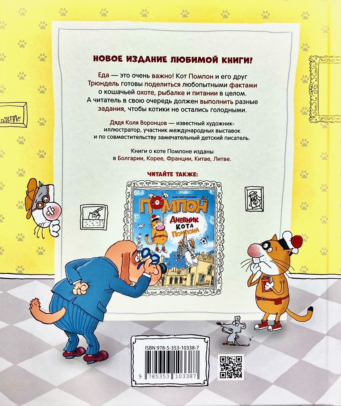 A new edition of a favorite book! A continuation of "Diary of Pompon the Cat". Food is not easy for independent and autonomous cats. No one brings it to them on a plate with a blue rim. So they have to run, jump, dive, hunt, sniff and hustle to get a portion of tasty food. In this book, Pompon the cat and his friend Trundle will share some tips and tricks that will be useful to all hungry cats (and even children). And the cats will also offer young readers to draw, compose, go through several mazes and even play their favorite game - "Gluttony Fight"! Uncle Kolya Vorontsov is a famous illustrator, a participant of international exhibitions and a wonderful children's writer. Books about Pompon the cat have been published in Bulgaria, Korea, France, China, Lithuania.