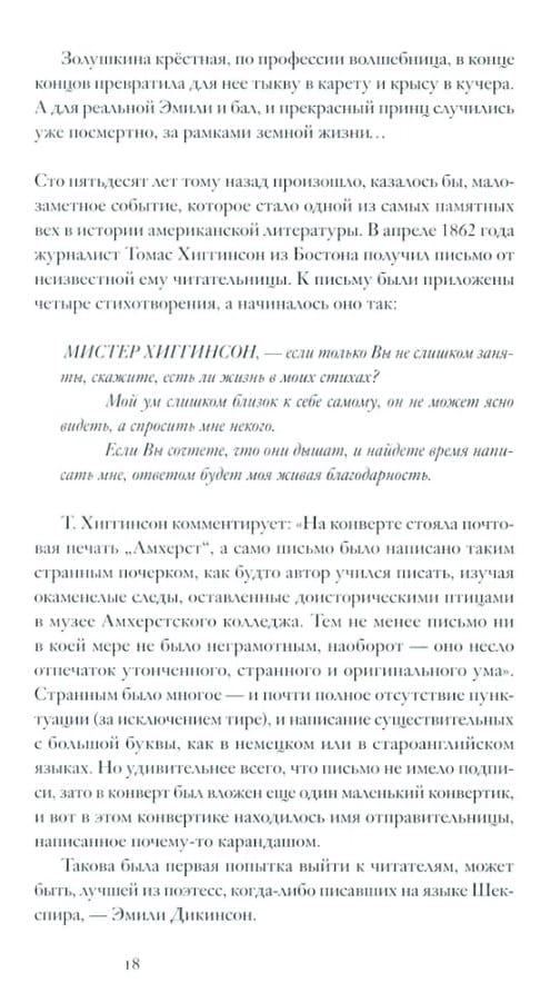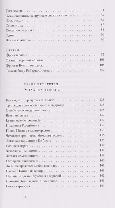 This book by renowned poet and translator Grigory Kruzhkov contains articles on three American poets: Emily Dickinson, Robert Frost, and Wallace Stevens; they can rightly be called his lifelong companions. These poets are very different: Emily Dickinson, a provincial recluse who never saw her poems published; the celebrated Robert Frost, winner of four Pulitzer Prizes; and Wallace Stevens, the great magician and wizard who spent his entire life hiding behind the guise of an insurance clerk. These authors occupy the bulk of the book, but there is also room for other 20th-century poets: from the "transatlantic" T.S. Eliot and W.H. Auden to contemporary American poets Charles Simic and Kay Ryan.