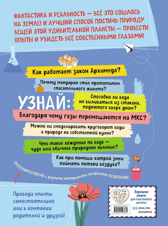 "Eureka!" - Archimedes shouted as he plunged into the water and finally discovered the answer to his question. Many centuries have passed since then, but experiments and tests continue to help people learn about the world around them. Do you want to understand the nature of things and see for yourself how the laws of nature work? Conduct experiments on your own or together with friends and relatives, and you will discover incredible mysteries of the world around you - so familiar to us, but at the same time amazing.