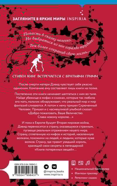 After his mother's death, David feels terribly alone. The only thing keeping him company are the books on the shelf. Gradually, these books begin to whisper to him in the darkness. Finding refuge in the myths and fairy tales that his mother loved so much, the boy finds that the real world and the world of fantasy merge. And then the Curled Man came to him. He came and said with a mocking smile: "Welcome, Your Majesty. Hail the new king..."