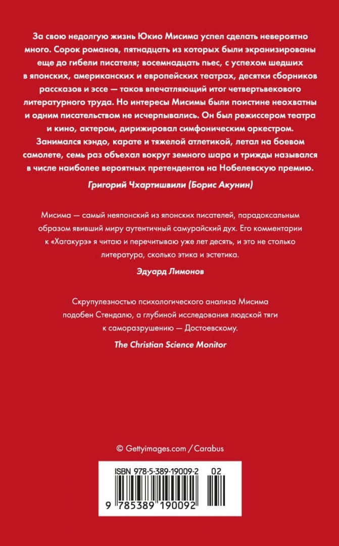 Yukio Mishima is the world's most famous and widely read Japanese writer. He became equally famous for his works in every conceivable genre (novels, plays, short stories, essays) as for his extravagant style of life and death (hara-kiri after a failed attempt at a monarchical coup). "The Book of the Samurai" is Mishima's reflection on "Hagakure, or Hidden in the Leaves," a treatise on the samurai's code of honor (bushido), couched in the canons of Zen Buddhism, Shintoism, and Confucianism and based on conversations with the 17th-century samurai Jyoto Yamamoto. These stories of martial valor and martial duty, conscience and responsibility, recorded by one of Jyoto's disciples, are not a collection of commandments, but an original method of learning about the world and comprehending wisdom. "Perhaps 'Hagakure' was originally a paradox book," Mishima writes. - During the war it radiated light, but in broad daylight it was not very noticeable, and only in the darkness the book shone truly. <...> This book professes freedom. This book appeals to the heat of hearts." For the first time published in translation from Japanese - previous editions of "The Book of the Samurai" in Russian were based on the English translation.
