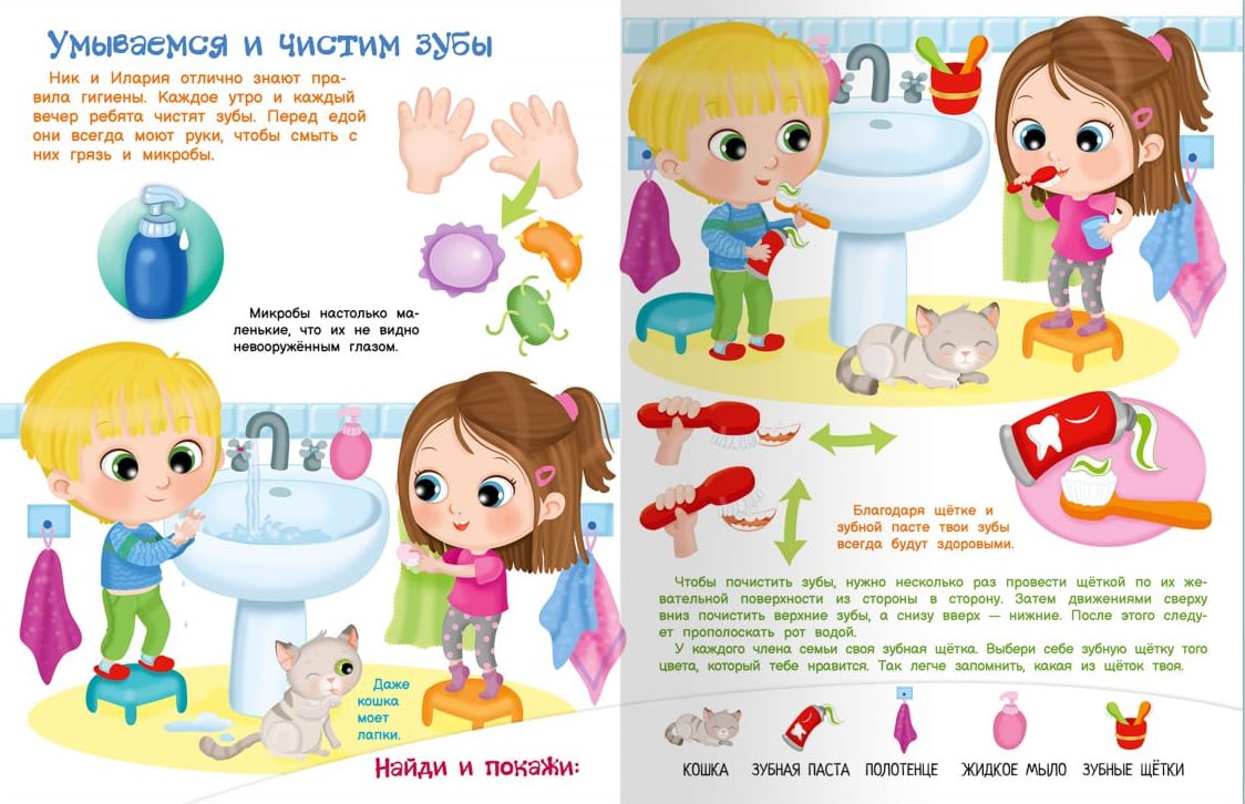 The book "I know how to wash and brush my teeth" will teach your child the rules of hygiene in an entertaining way and will tell you why it is important to follow them. Charming colorful illustrations will definitely interest your child, which will help them better understand what they read.