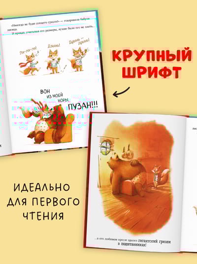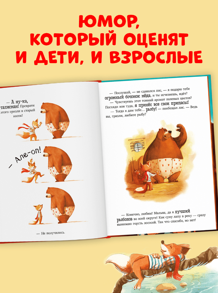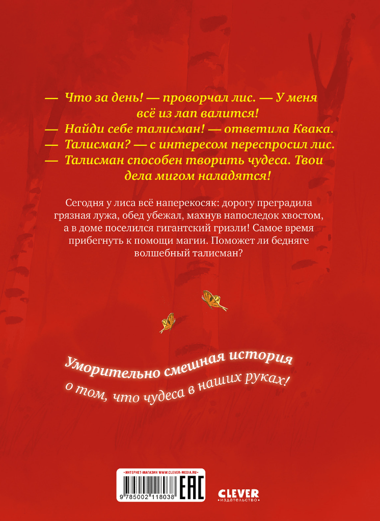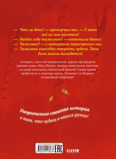 The fox's day was not going well from the very morning: chasing a rabbit, he accidentally swallowed three lumps of mud, slipped on slugs six times, hit the apple trees twice, got his head stuck in an owl's nest, and finally almost drowned. Frog Kwaka advised the fox to find himself a magic talisman that attracts good luck. But will magic help when a giant grizzly bear has settled in your own hole?