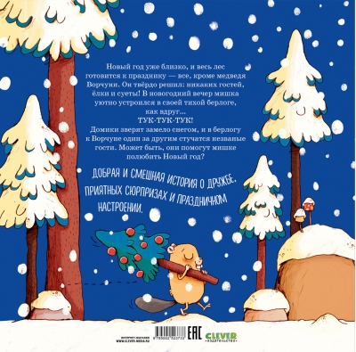 The pages of this book for little ones, Clever Books, offer themes of friendship, mutual support, and respect for one another, perfect for discussing with your little ones. This incredibly funny children's book with large, beautiful illustrations will instill a festive spirit and a belief in miracles! The translation of "Grumpy Bear and the New Year" for children was done by the talented author Elena Feldman.