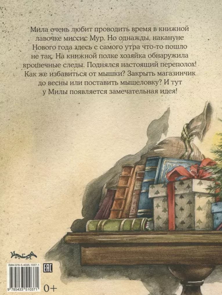 Mila loves spending time in Mrs. Moore's bookstore. But one day, on New Year's Eve, something went wrong here from the very morning. The owner found tiny footprints on the bookshelf. It was quite a commotion! How do you get rid of a mouse? Should we close the store until spring or set a mouse trap? And then Mila has a wonderful idea.