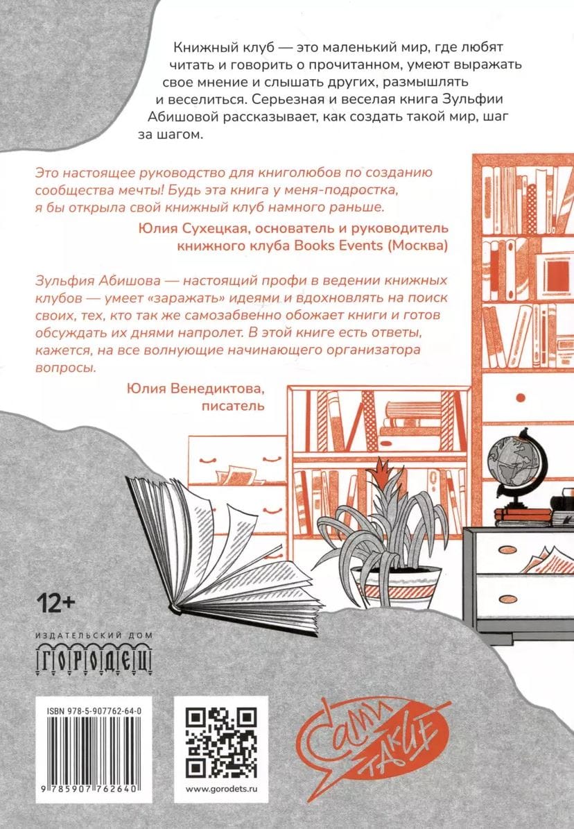 Zulfiya Abishova's book tells teenagers how to create and run their own book club. How to gather an audience? Where to hold meetings? Who decides what books to discuss in the club? Where to get a logo, whether to introduce payment, what to do if the participants are bored?
