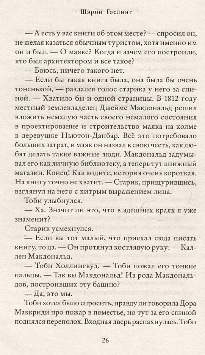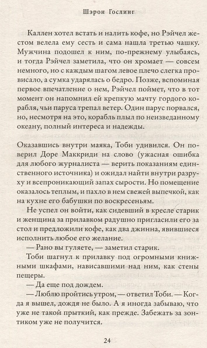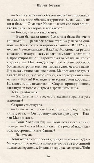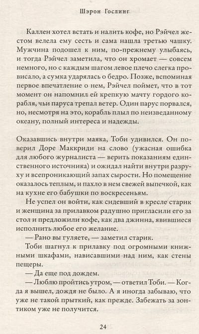 Now it houses the only bookstore for miles around - a center of attraction for lovers of reading, cozy atmosphere, warm conversation and good coffee. Rachel, who runs the bookstore and lives on the top floor of the lighthouse, came here five years ago after running away from her sadistic husband and deciding to start a new life - and found a job she loved and a place she now calls home. After the sudden death of the lighthouse owner, she will have to battle dishonest businessmen and unfavorable circumstances to try to save the lighthouse bookstore, which has taken an important place in the lives of many people close to her...