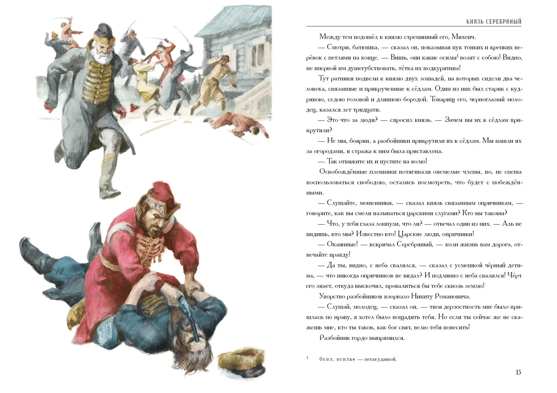 The novel's pages paint a vivid and vibrant picture of Russian life in the second half of the 16th century, which served as the backdrop for the tragic events that marked the reign of Ivan the Terrible. Before us is boyar Rus': the formidable tsar, with all the contradictions of his strong and complex nature, and his devoted young commander, the simple-minded and courageous Prince Serebryany; the noble boyar Druzhina Morozov and the cunning and calculating Boris Godunov; the bloodthirsty Malyuta Skuratov and the unbridled Afanasy Vyazemsky; Bandits defending the Russian land, and the cruel oprichniki, the fearsome servants of Ivan IV Vasilyevich. Returning to his native land from the Livonian War, Prince Serebryany finds himself in the thick of political intrigue and conspiracies, coming face to face with enemies and traitors. The hero faces the question: how to defend the law and his own dignity while remaining loyal to the sovereign?