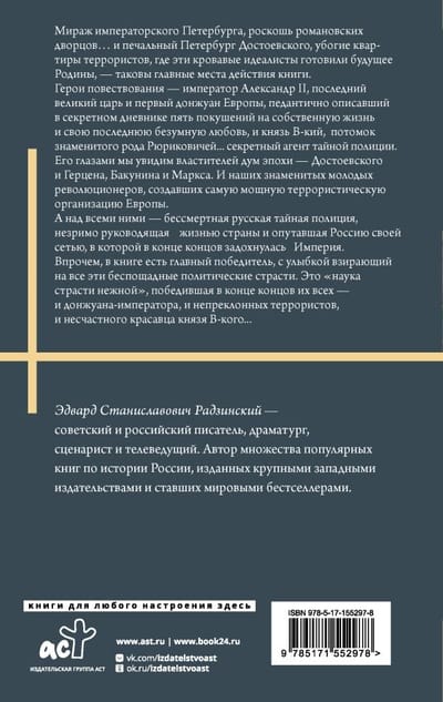 The heroes of the story - Emperor Alexander II, the last great tsar and the first donjuan of Europe, pedantically described in a secret diary five attempts on his own life and his last mad love, and Prince V-kiy, a descendant of the famous family of Rurikovich.... is a secret agent of the secret police. Through his eyes we will see the rulers of the minds of the era - Dostoevsky and Herzen, Bakunin and Marx. And our famous young revolutionaries who created the most powerful terrorist organization in Europe.