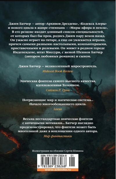 This is a very strange world. It is inhabited by various races: Marat, Canim, Icemen, insectoid Vord, and even the descendants of Roman legionnaires. Every inhabitant here receives a supernatural ally in childhood—a Fury of Water, Fire, Earth, or Air. Thanks to these creatures, the peoples of the mighty Aleran Empire lived for centuries without civil strife and united to repel external enemies. But now the supreme authority has weakened, the nobility is mired in squabbles and intrigues, and the country is sliding inexorably toward civil war. The paradox is that the only person who can challenge the impending catastrophe is a man without any magical talents, and therefore unable to enlist the support of the elemental spirits—a young shepherd from the harsh northern wilderness.