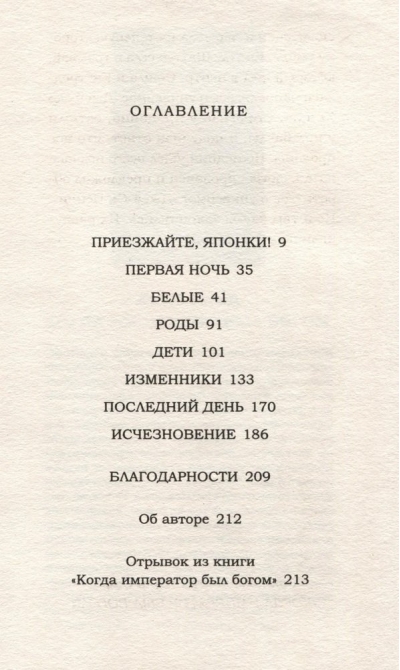 This book is a historical account full of drama and mature wisdom. After the outbreak of World War II, the familiar life of ethnic Japanese in America was shattered. They became enemies of the state. Some of them were arrested, others expelled from the country, still others interned in camps. This is what happens to Otsuka's characters: the father was detained, and the mother and two children were sent to Utah, to a barracks behind barbed wire. But what's next? Will the time of gentle warm days, blue skies, green lawns in front of the porch ever return - the sweet everyday life whose value is realized only when you have lost everything? Turning to her family's past, Julie Otsuka shows with incredible skill how the difficult pages of history are overcome by life itself, which has everything: routine, fear, despair, beauty, and reunion after a long separation.