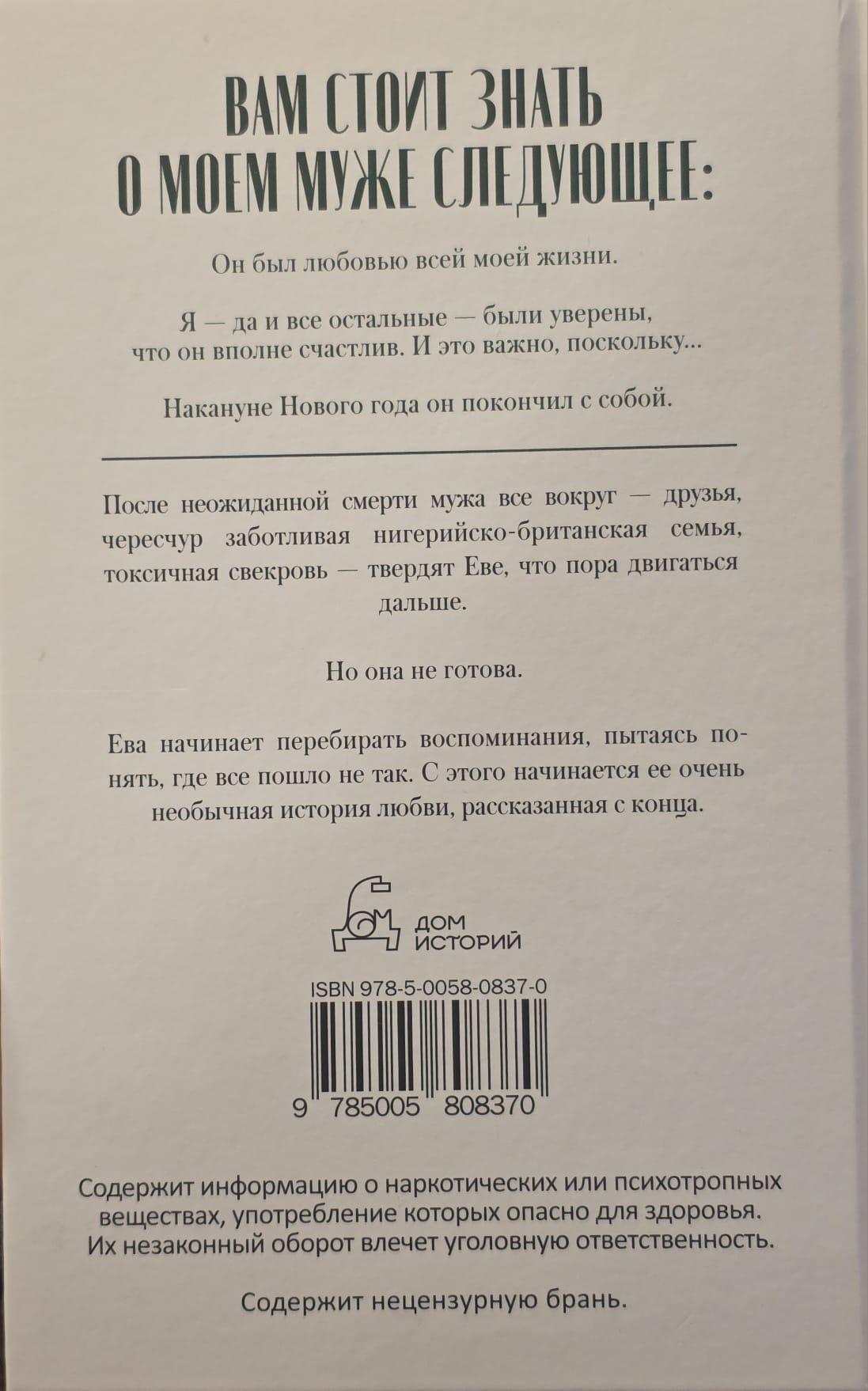 After her husband's unexpected death, everyone around Eva—her friends, her overprotective Nigerian-British family, her toxic mother-in-law—tell her it's time to move on. But she's not ready. Eva begins to sift through her memories, trying to figure out where it all went wrong.