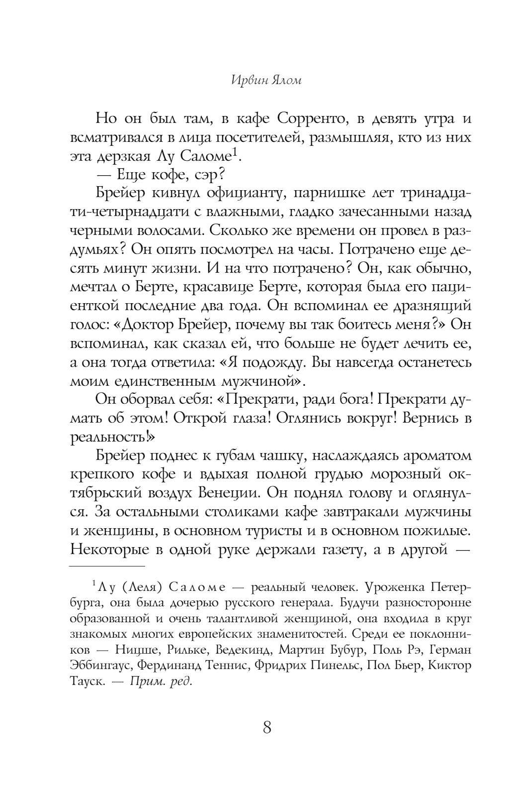 Yalom draws into the action not only Nietzsche and Breuer, but also Lou Salomé, "Anna O.", and a young medical intern, Sigmund Freud.