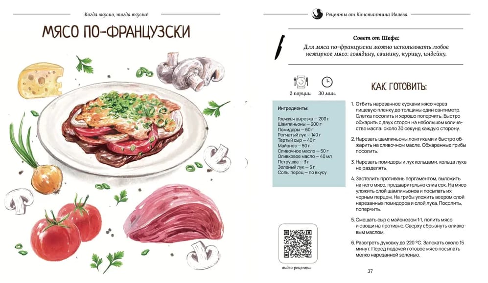 The book with author's recipes from Chef Konstantin Ivlev, which became the most popular by the number of views on Ivlev Chef Channel. 50 recipes from salads to desserts that everyone can cook, tips from Chef and QR codes for watching videos with step-by-step preparation. Cook together with Chef Konstantin Ivlev!