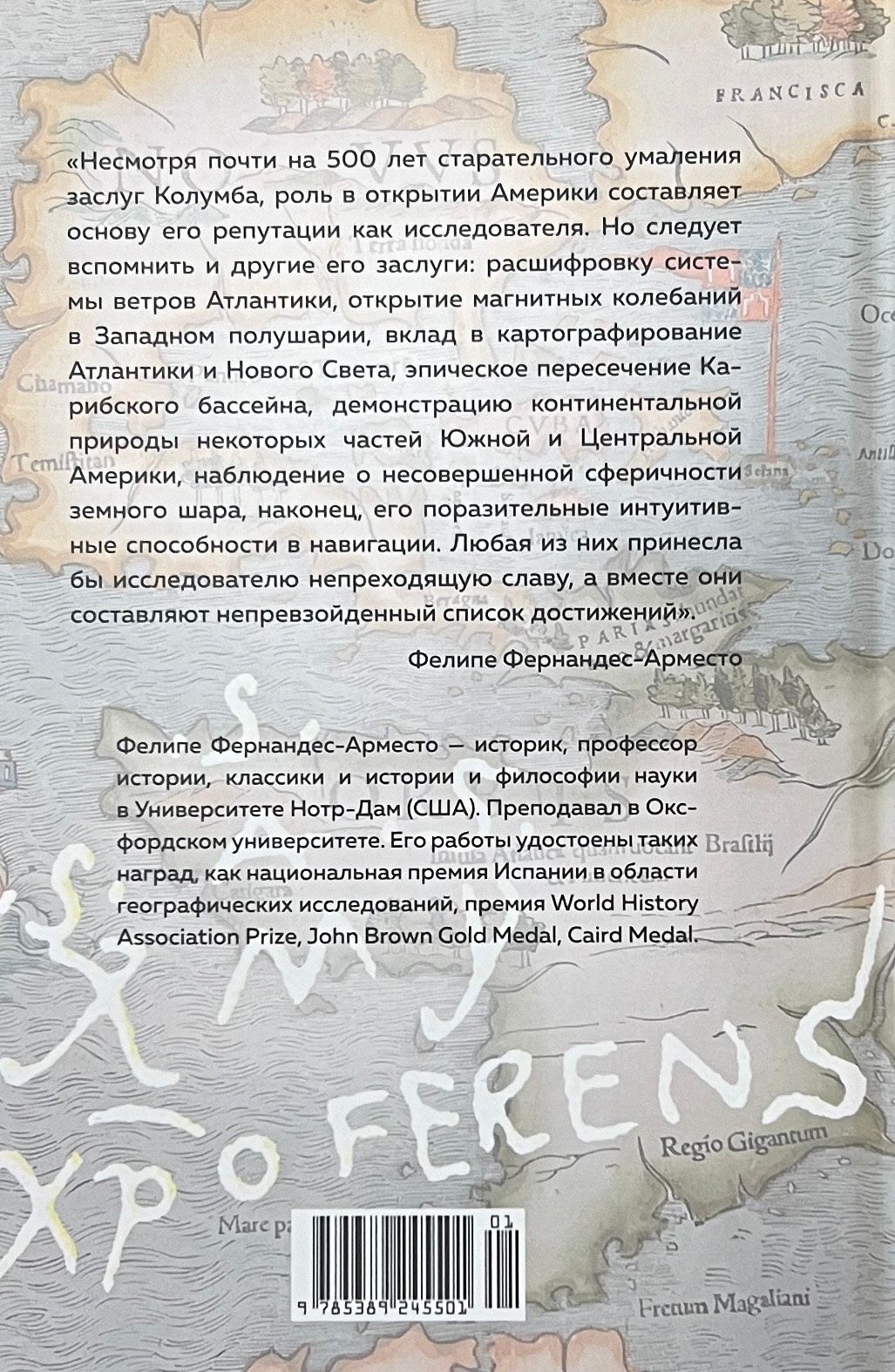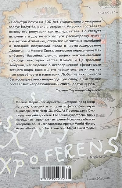 Christopher Columbus' name is forever etched in the history of great voyages and discoveries: he was the first to sail across the Atlantic to American shores, thanks to his perseverance and determination. A national holiday is dedicated to him, many movies have been made about him, the country of Columbia, cities, a crater, and an asteroid have been named in his honor. However, his identity is still a mystery. Debunking myths and legends, British historian Felipe Fernandez-Armesto has created the most complete biography of Columbus to date - a self-taught man, desperate to win favor at court, an adventurer, a dreamer. This book, written with the precision of a documentary chronicle, reads fascinatingly like a thrilling adventure novel. "Columbus was an uneducated man, aware of his ignorance but defying the conventional wisdom of his time. His adoration of the old texts did not prevent him from feeling elation whenever he was able to correct them based on experience. This makes him one of the last lights of medieval cosmography and one of the first beacons of the Scientific Revolution..." Felipe Fernandez-Armesto