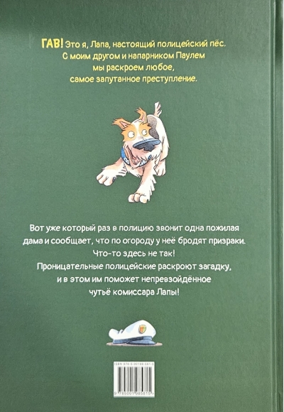 Meet the most charming, fun and intelligent police dog in the world! A nice old lady called the police, Mrs. Hansen. She complains that mysterious ghosts are walking around her garden. Commissioner Lapa and his partner Paul get down to business immediately. This means that they will reveal the secret of garden ghosts! Katya Ryder is the author of more than one hundred and fifty children’s and youth books, which have been translated into many languages of the world. She loves dogs very much. She has a dog at her house, Poldi, who also dreams of becoming a real cop. Dirk Hennig is a famous illustrator. He also has a four-legged friend named Pico. It was he who inspired the artist to create the image of the Commissioner of Paw.