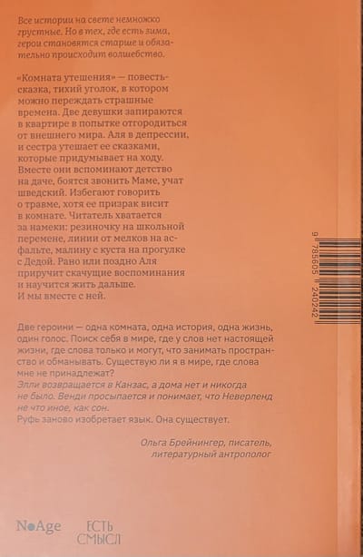 "The Room of Comfort" is a fairy tale story, a quiet corner where you can wait out terrible times. Two girls lock themselves in an apartment in an attempt to fence themselves off from the outside world. Alya is depressed, and her sister consoles her with fairy tales that she makes up on the fly. Together they remember their childhood at the dacha, are afraid to call Mom, and learn Swedish. They avoid talking about trauma, although its ghost hangs in the room. The reader grabs at hints: an eraser during a school break, chalk lines on the asphalt, raspberries from a bush on a walk with Grandpa. Sooner or later, Alya will tame her jumping memories and learn to live on. And we, along with her.