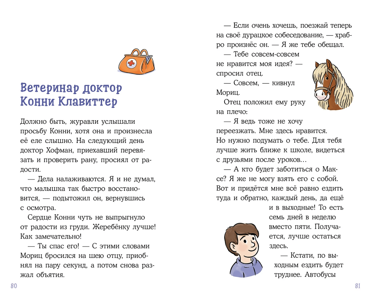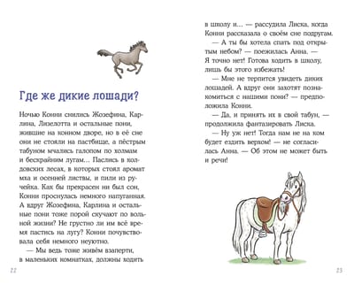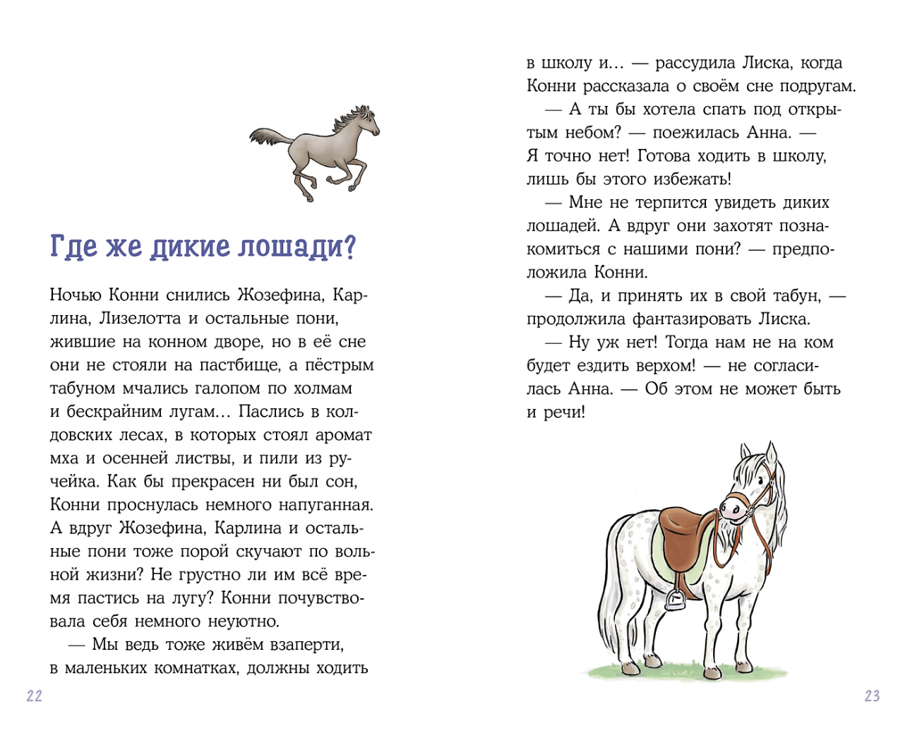 Connie is looking forward to the holidays, because she will go to the stables again. There is a surprise waiting for her there. In the reserve, not far from the stables, there lives a wild herd of horses. The animals are very timid and live independently of people. But when Connie and her friends notice that one of the foals is injured, it becomes clear to them: he definitely needs help!