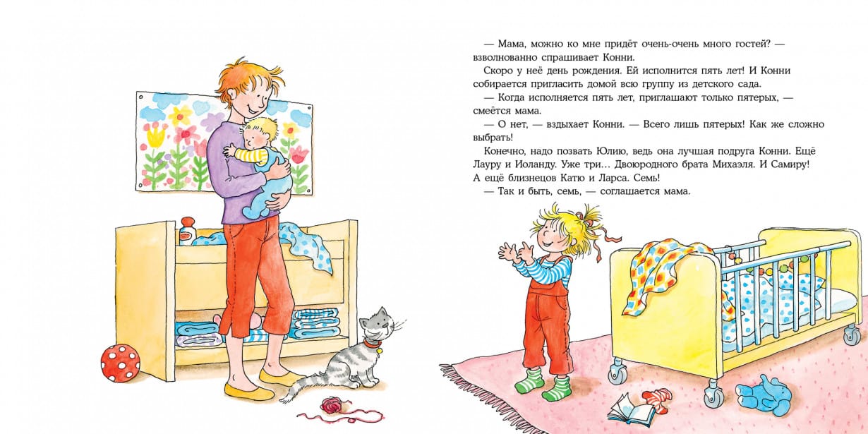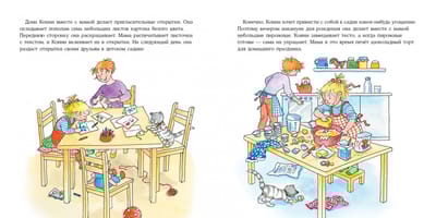 Birthday is the most important holiday of the year. Even more important than New Year's Eve! Connie is turning five years old! The whole day is busy: first you have to give cakes to the kids in kindergarten, then help your mom to decorate the apartment and, of course, meet the guests. Have fun together with your favorite heroine and prepare for your baby's birthday. Together with Connie, your baby will: learn what treats can be prepared for the birthday party; learn many interesting children's games; come up with his own idea for the party.