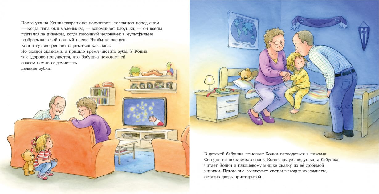 There are times when parents need to go somewhere without their children. That's when grandparents come to the rescue. And Connie is going to visit her grandparents. And not just for fun, but for a sleepover! For the whole weekend! Read this cozy story with your baby and remember that with grandma nothing is scary, and grandpa knows so many interesting games that no one will get bored.