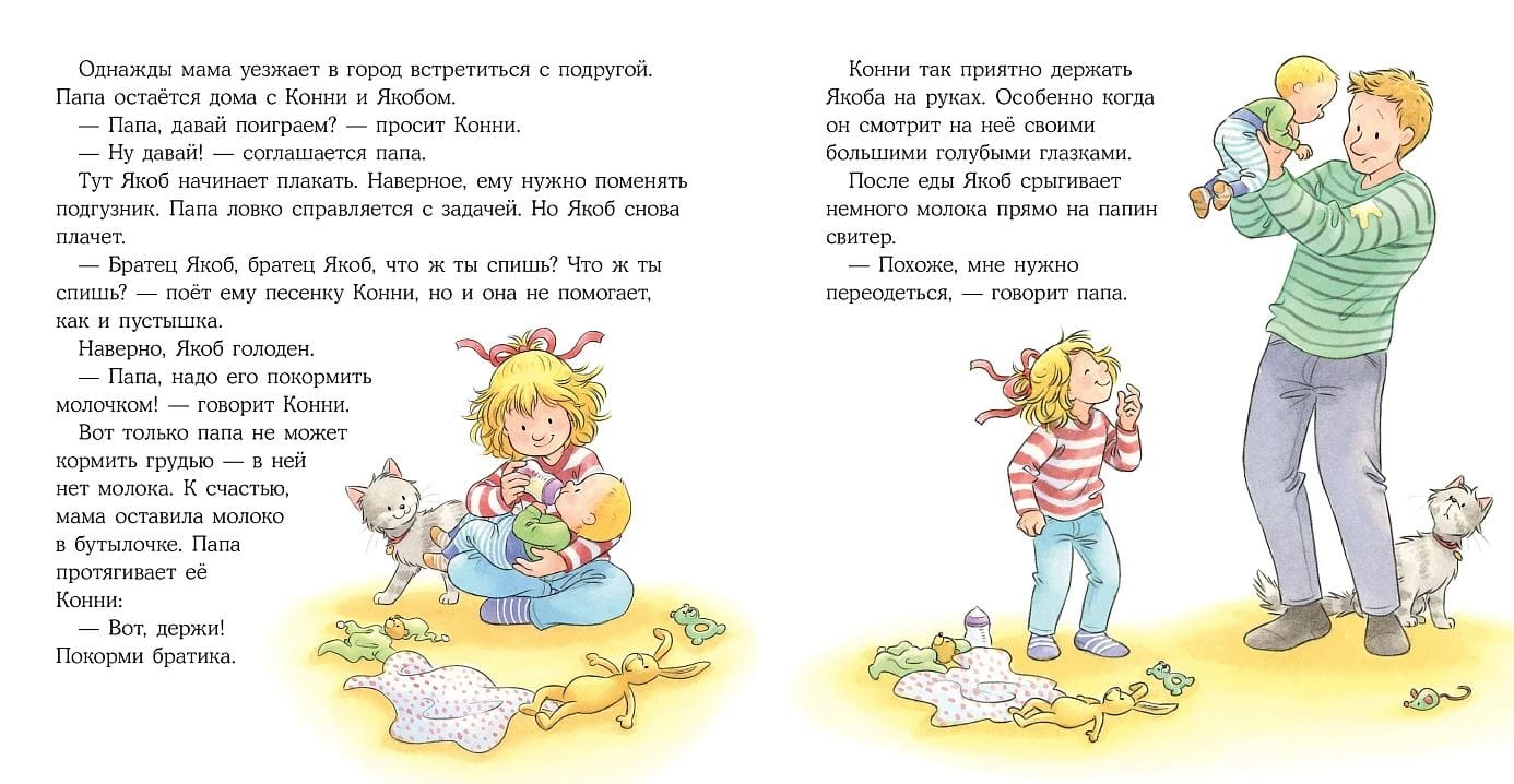 Connie has a little brother! Sometimes she is very happy about it: she likes to feed him from a bottle, watch him smile and even teach him to walk. And sometimes Jacob annoys her a lot: he often cries, throws toys around and takes away her parents' attention. Will Connie be able to adapt to the changes and become a real big sister?