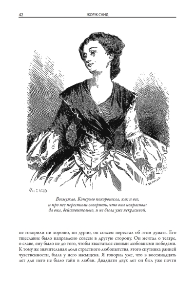 The novel "Consuelo" by the French writer of the 19th century George Sand tells the story of a young singer with an unprecedented musical talent who goes through many trials in her life. The novel, full of mysterious events, has mystical, religious and philosophical motives. Consuelo has to make a difficult choice between fame and love, art and personal happiness. The text of the novel is given in the translation by Alexandra Andreyevna Beketova. The publication is decorated with illustrations by the writer's son Maurice Sand.