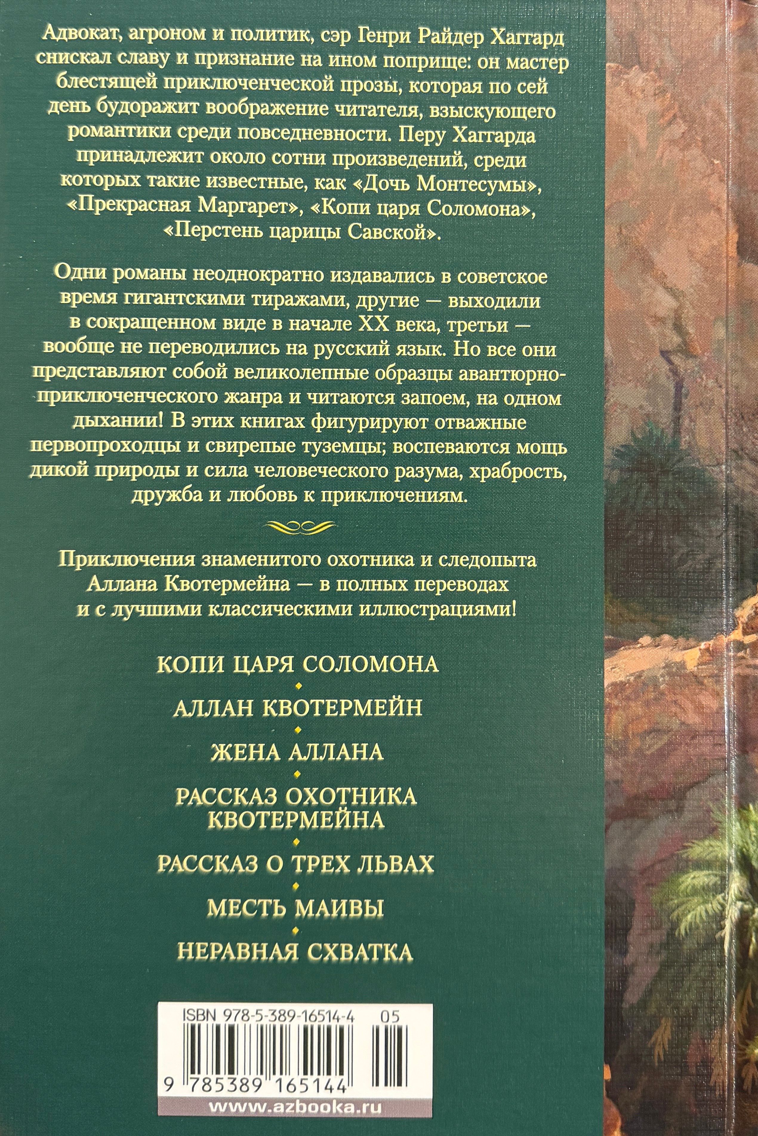 H. R. Haggard's boundless imagination, passion for travel and extraordinary erudition allowed him to create dozens of exciting novels and brought him worldwide readership. The circulation of Haggard's books exceeded even the circulation of editions of such masters of adventurous prose as R.L. Stevenson and A.K. Doyle. His historical-adventure novels - always a fascinating journey through the labyrinths of centuries, breathtaking landscapes of exotic countries, unrelenting tension intrigue, sharp conflicts and, most importantly - the element of real adventure with unexpected turns of fickle fortune.