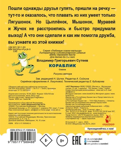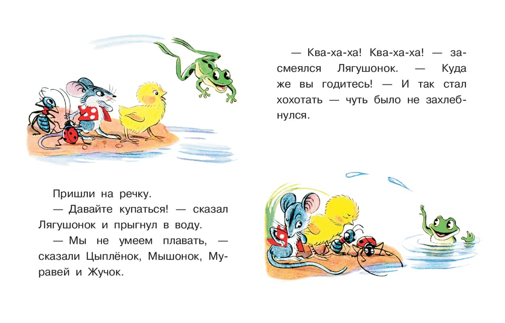 One day, friends went for a walk, came to the river - and it turned out that only Frog could swim. But Chicken, Mouse, Ant and Beetle were not upset and quickly came up with a solution! And what they did and how friendship helped them, you will learn from this book!