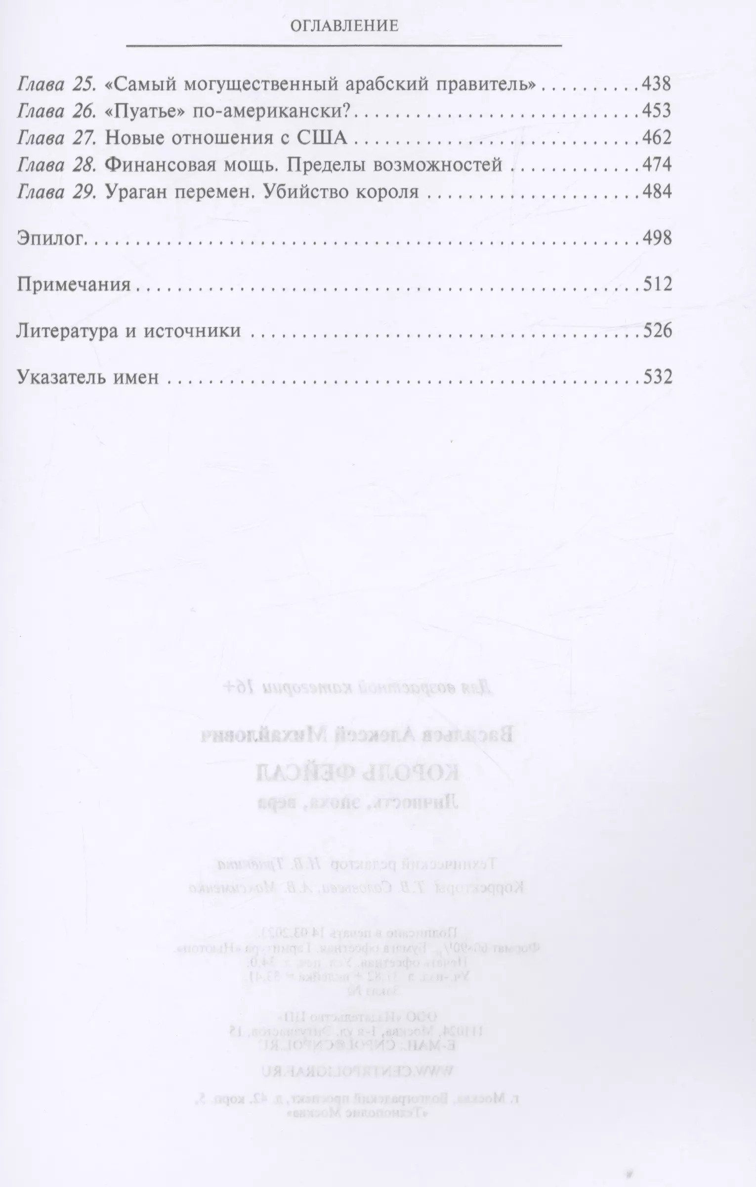 The book is dedicated to one of the most prominent Arab leaders of the 20th century, the role of personality and spirituality in politics. Rich factual material allows the reader to form his own idea about the hero of the book, about his distinctive country, about the turning points of its history, to get to know "from within" the "Islamic factor", which plays such an important role in the political life of the world community. A.M. Vasiliev's work is both an academic and a literary work, intended for both specialists in Oriental studies and a wide range of readers.