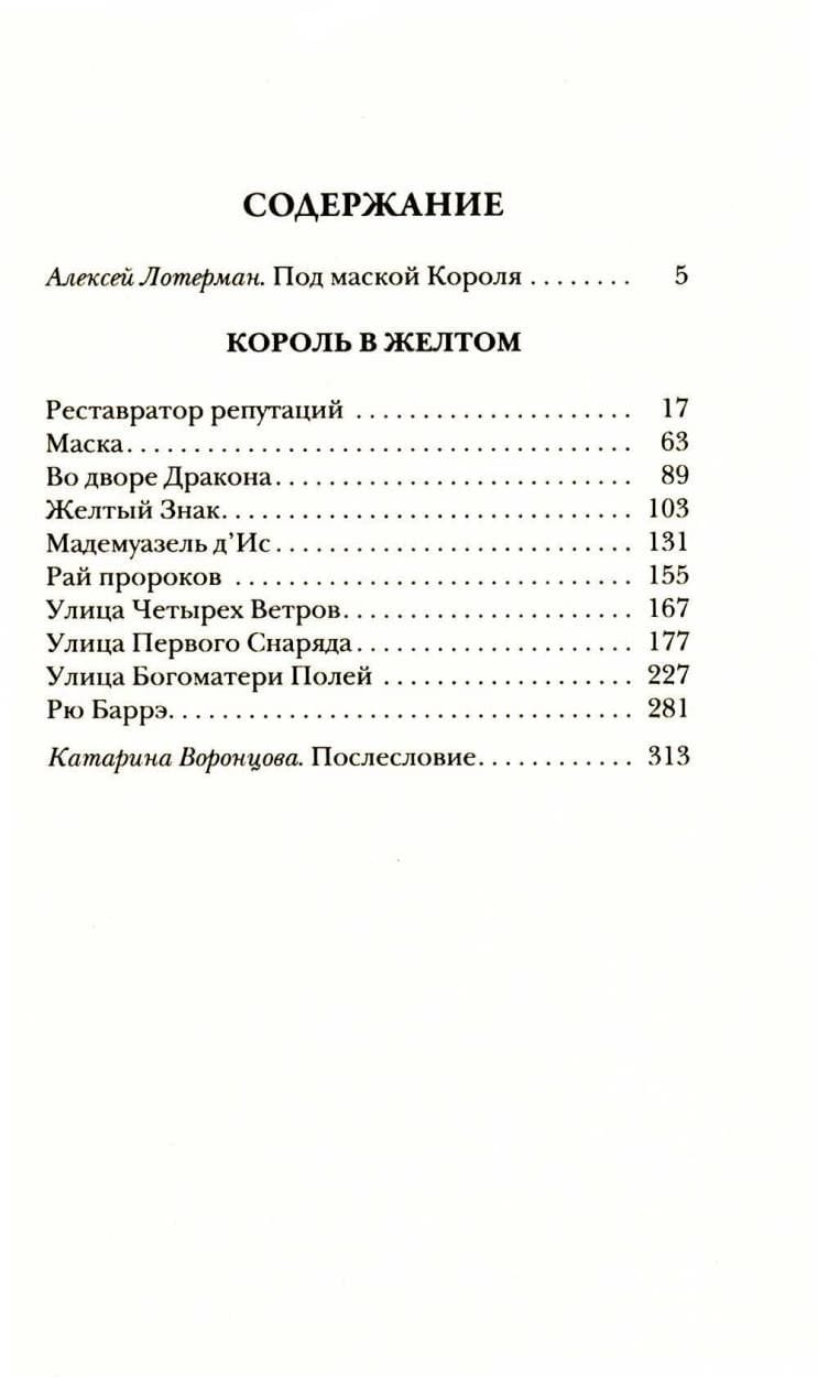 Putting the book aside, they were no longer sure how real the events around them were... The beginning of an alternative twentieth century. In all cities of the United States, the humane government opens Death Palaces for those wishing to end their lives... The blasphemous play "The King in Yellow", forbidden for distribution, causes an epidemic of mental disorders.... Disturbing dreams of people about each other, strange coincidences and persecutions in America and Europe... How are all these events connected and what role does the legend of the divinely beautiful Carcosa play here, a city that every poet and dreamer should visit, even if he or she is locked up here forever?..