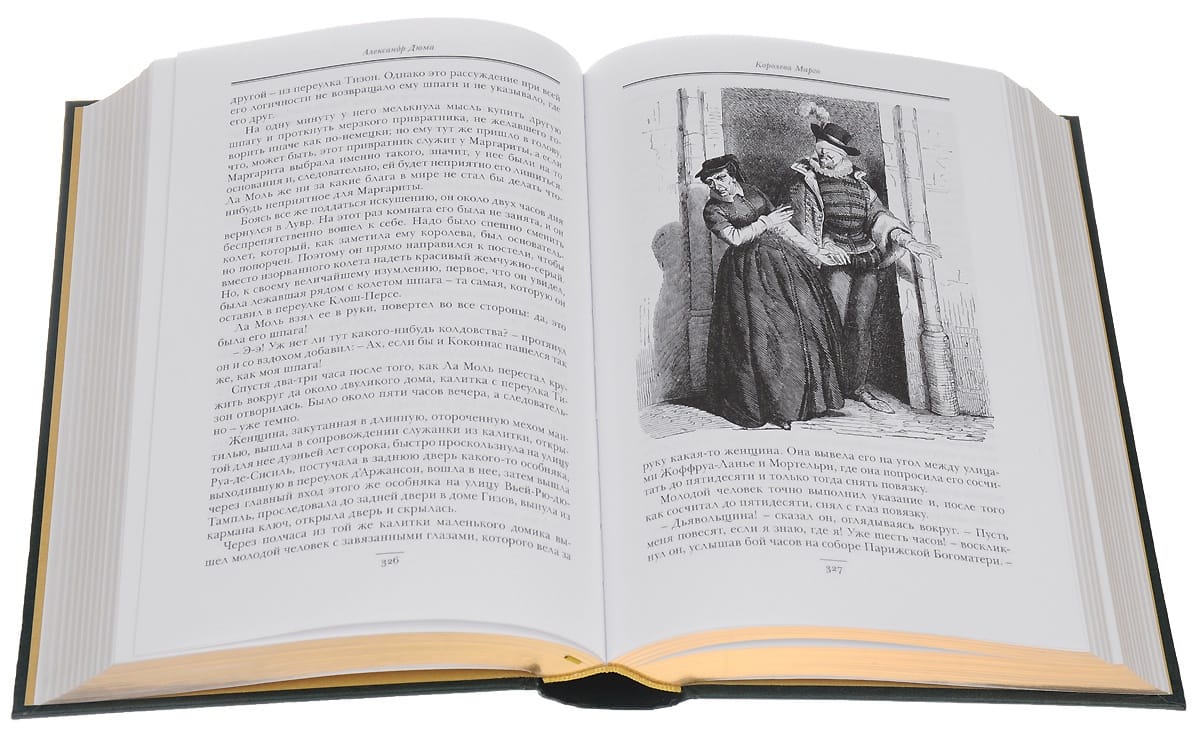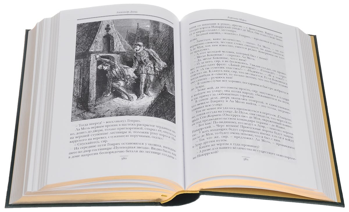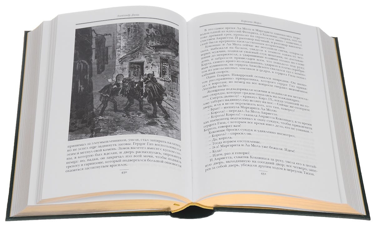 Stylishly designed gift edition in leather binding with gold embossing on the cover, three-sided gold trim and silk lasso. "No one has read all the works of Dumas, but the whole globe has read Dumas," remarked André Morois. Alexander Dumas won the literary Parnassus, where Victor Hugo, Musset, Vigny, Gautier, George Sand, Eugène Su, Stendhal, Balzac - the color of French literature of the XIX century. Captivated by the charm of his talent were both readers, and critics, and publishers. Since 1996, the publishing house "Intrade Corporation" publishes a series of novels A. Dumas. It has already published more than 50 volumes of the most popular works of the famous author. In this volume, the publisher offers you a new edition of one of the most favorite novels of A. Dumas "Queen Margot". In contrast to the edition published in 1996, this edition contains about 200 even more interesting new illustrations. Almost all of them Russian readers will be able to see for the first time. Readers will be captivated by the virtuosity and brilliance of the dizzying intrigue, the fiery temperament of the characters, the variety and fury of their characters.