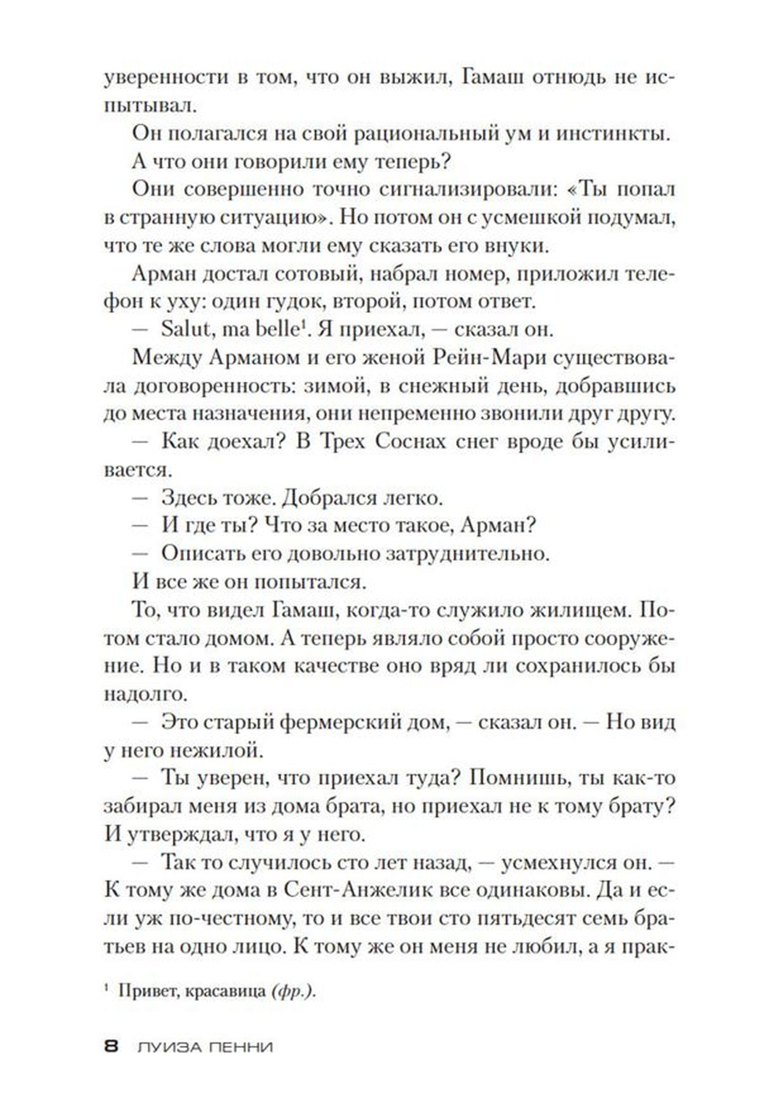The novel "The Kingdom of the Blind" continues the series of investigations of Chief Inspector Armand Gamache. This charming character was created by the pen of Louise Penny, the only five-time winner of the Agatha Christie Award in the world. Six months ago, Armand Gamache was temporarily suspended from work, his future career is at risk, but the inspector's conscience is clear and he enjoys this respite among friends and family in the village of Three Pines. However, the vacation does not last long: the inspector receives a letter from a notary with an invitation to come to the specified address. Gamache arrives at an abandoned house and finds out that he has been appointed executor in the will of an unknown woman who worked as a cleaner and called herself a baroness. Crazy? Why did she choose three strangers to execute her last will in the presence of adult heirs? Soon after the will is read, the abandoned house collapses, and the body of one of the heirs is found under the rubble. "The motive is quite solid. Murders are committed for twenty dollars. And here we are talking about millions." So the title and fabulous money are not a fabrication at all? Meanwhile, another will, dated 1885, is found in the notary archive, and even more questions arise...