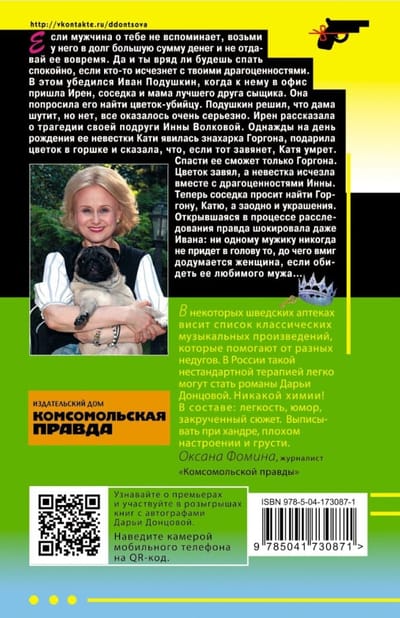 If a man does not think about you, borrow a large sum of money from him and do not pay it back in time. And you are unlikely to sleep well if someone disappears with your jewelry. Ivan Podushkin was convinced of this when Irene, a neighbor and the mother of the detective's best friend, came to his office. She asked him to find a killer flower. Podushkin thought that the lady was joking, but no, everything turned out to be very serious. Irene told about the tragedy of her friend Inna Volkova. Once on the birthday of her sister-in-law Katya appeared witch doctor Gorgon, gave a flower in a pot and said that if it withers, Katya will die. Only Gorgon could save her. The flower wilted, and the sister-in-law disappeared with Inna's jewelry. Now the neighbor asks to find Gorgon, Katya, and at the same time the jewelry. The truth revealed in the course of the investigation shocked even Ivan: no man would ever think of what a woman would think of if she offended her beloved husband....