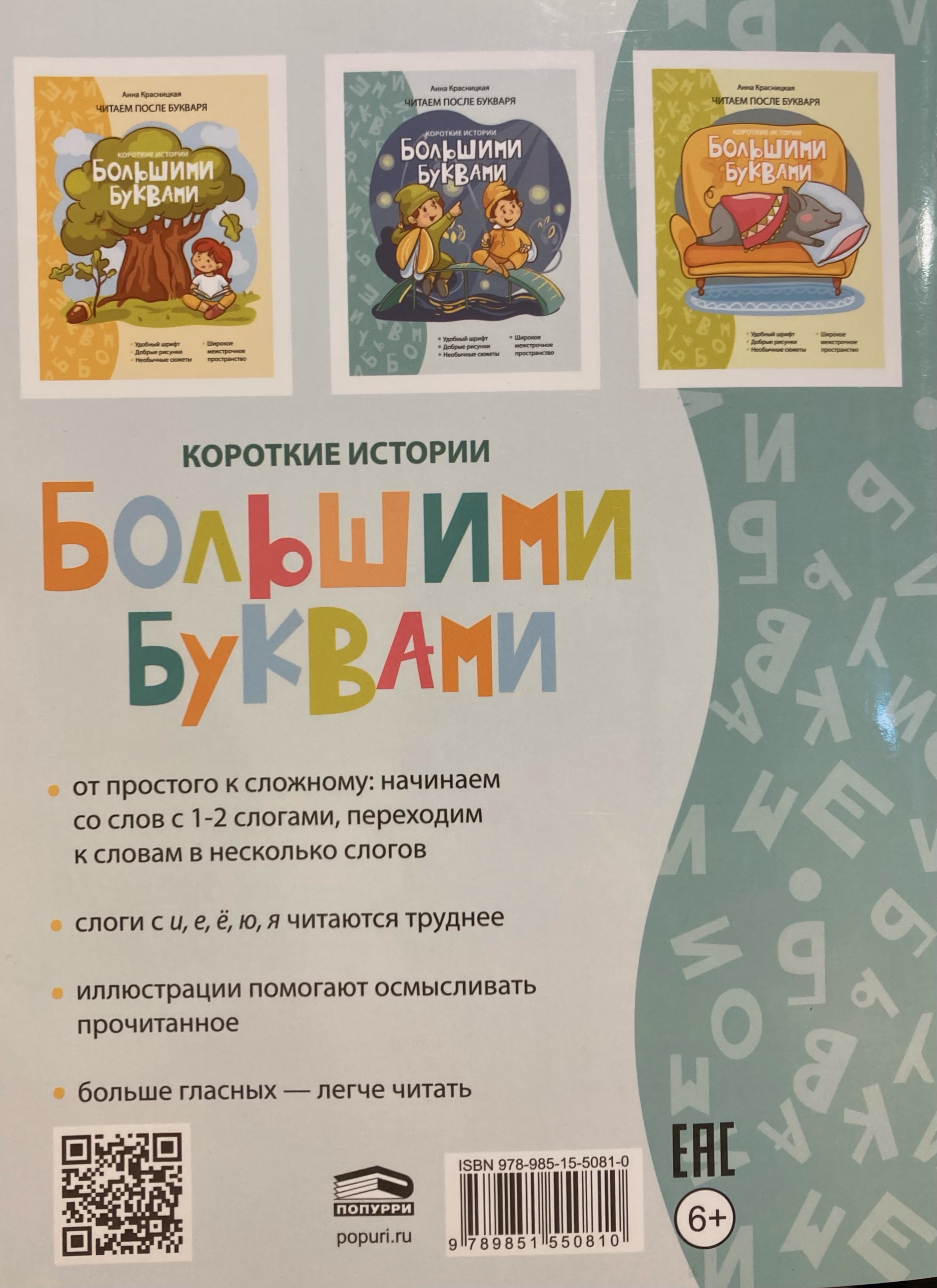 This book is designed for children who already know letters and syllables and is aimed at developing the skill of fluent, meaningful reading. The texts are structured in a progressively more complex manner: at first, words with one or two syllables are used, as well as words with a predominance of vowels, and short, single-line sentences. To help children connect the dots between written and drawn text, the book is equipped with large, colorful illustrations.