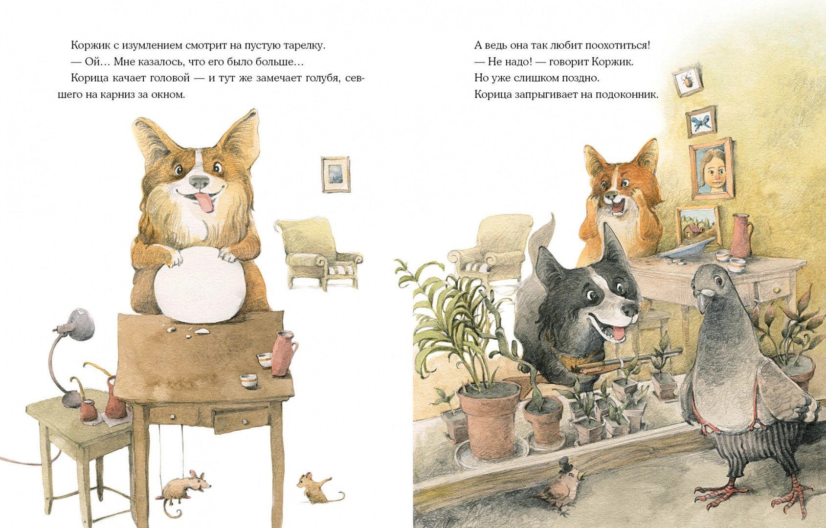 One day two cheerful dogs Korzhik and Cinnamon were left at home without an owner. And what a mess! Their friends ate pâté, broke flower pots, spilled paint, and even found a use for the owner's shirt... And yet they tried to behave well, although it was very difficult for them to do it alone! Charming illustrations by artist Valery Kozlov complete the funny story and make its characters even more amusing.