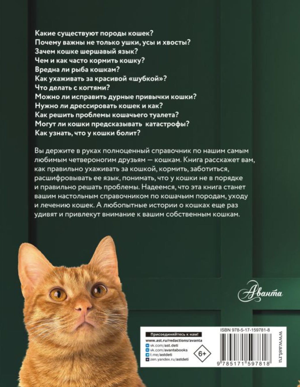 Before you is a book for all owners of the world's most popular pet, written by a true connoisseur and lover of charming furry pranksters. The publication "Cat. Complete Guide to Education and Care" will tell about the history of cats from ancient times to modern times, the most popular breeds and legendary cats, real and fictional, tells about the quirks of behavior and education, will help in the diagnosis and treatment of the most common cat diseases. The book will answer many questions of interest to all experienced and novice cat owners: What are cats? What is feline theropia? How does a cat see the world? How do cats purr? - And many, many more. For high school age.