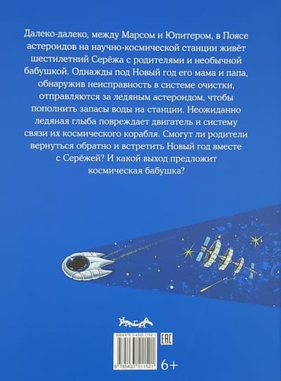 Far, far away, between Mars and Jupiter, in the Asteroid Belt, six-year-old Seryozha lives on a scientific space station with his parents and an unusual grandmother. One New Year, his mom and dad, having discovered a malfunction in the purification system, go for an icy asteroid to replenish the station's water supplies. Suddenly, an ice block damages the engine and communication system of their spaceship. Will the parents be able to return back and celebrate the New Year with Seryozha? And what solution will the space grandmother offer?