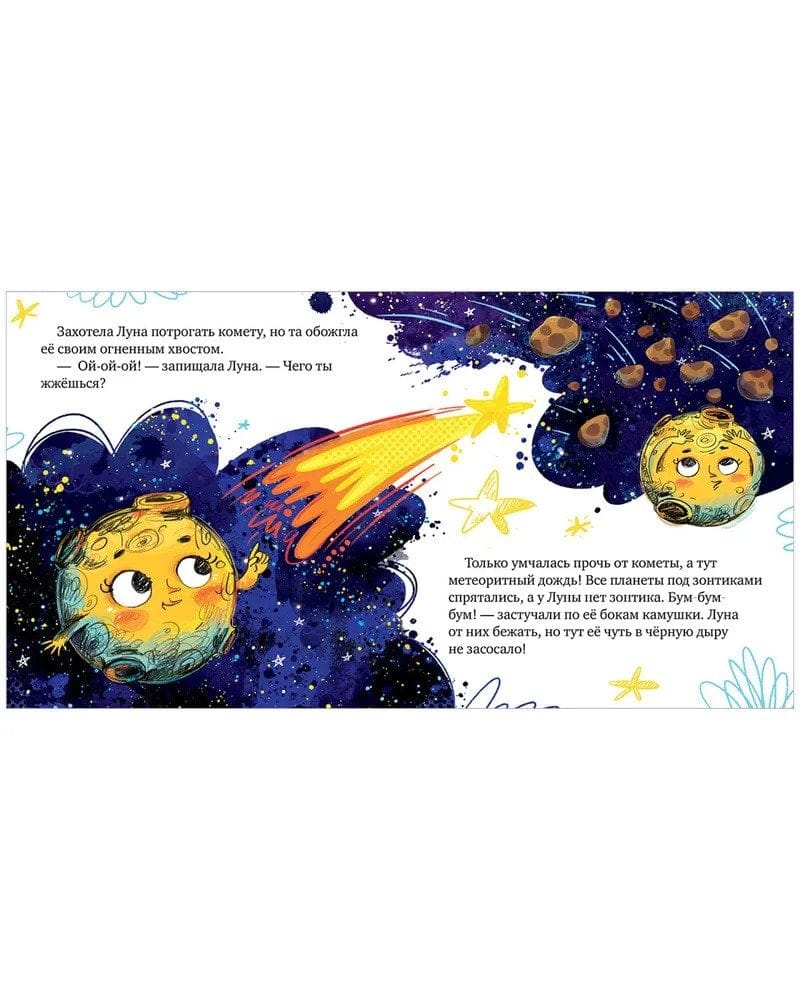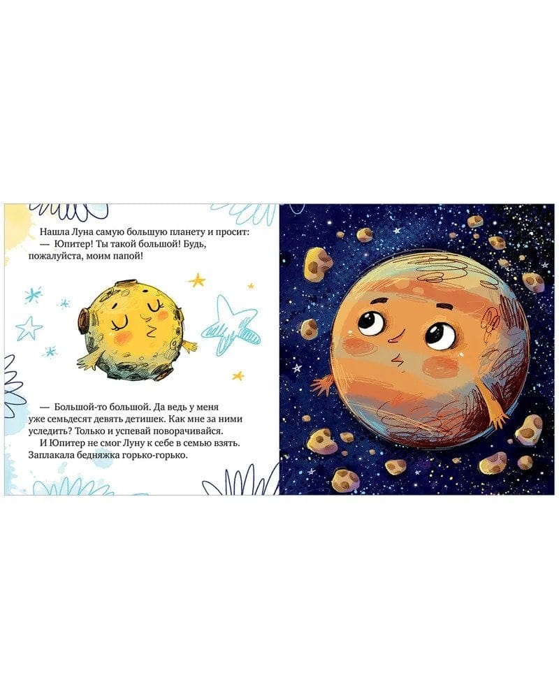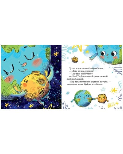 The book "The Moon and the Earth" will familiarize your child with the charming little Moon, which time and again gets into different cosmic situations, and the wise and kind planet Earth supports her in every possible way and helps her to cope with various tasks. You will have to learn what a meteor shower is, how a black hole is formed in space and why we see the Moon skinny, then full and how it is properly called in astronauts. With the book "The Moon and the Earth" your little one will definitely not get bored, and will discover a lot of new and useful scientific information about space and its structure. The series "Space Fairy Tales" - educational books for little geeks, where scientific knowledge about planets, stars, comets and asteroids is presented in the form of a fascinating fairy tale.