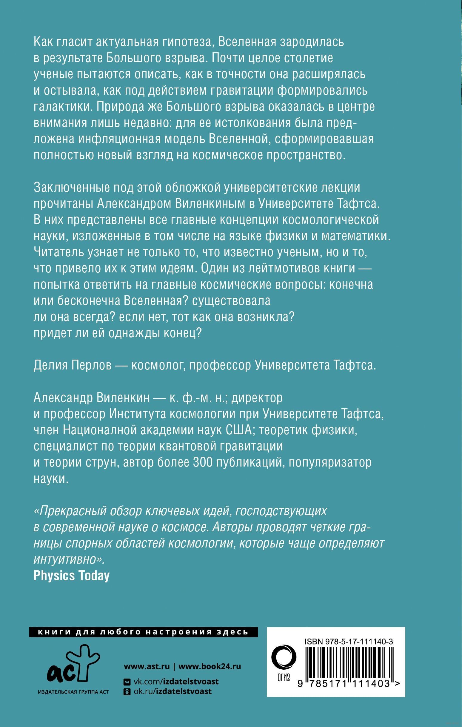 As the current hypothesis states, the universe originated as a result of the Big Bang. For almost a century, scientists have been trying to describe how exactly it expanded and cooled, how galaxies were formed under the influence of gravity. The nature of the Big Bang has only recently come into focus: an inflationary model of the universe has been proposed for its interpretation, forming an entirely new view of outer space. Enclosed under this cover are the University Lectures given by Alexander Vilenkin at Tufts University. They present all the main concepts of cosmological science, presented also in the language of physics and mathematics. The reader will learn not only what scientists know, but also what led them to these ideas. One of the leitmotifs of the book is an attempt to answer the main cosmic questions: is the universe finite or infinite? Has it always existed? If not, how did it arise? Will it end one day?